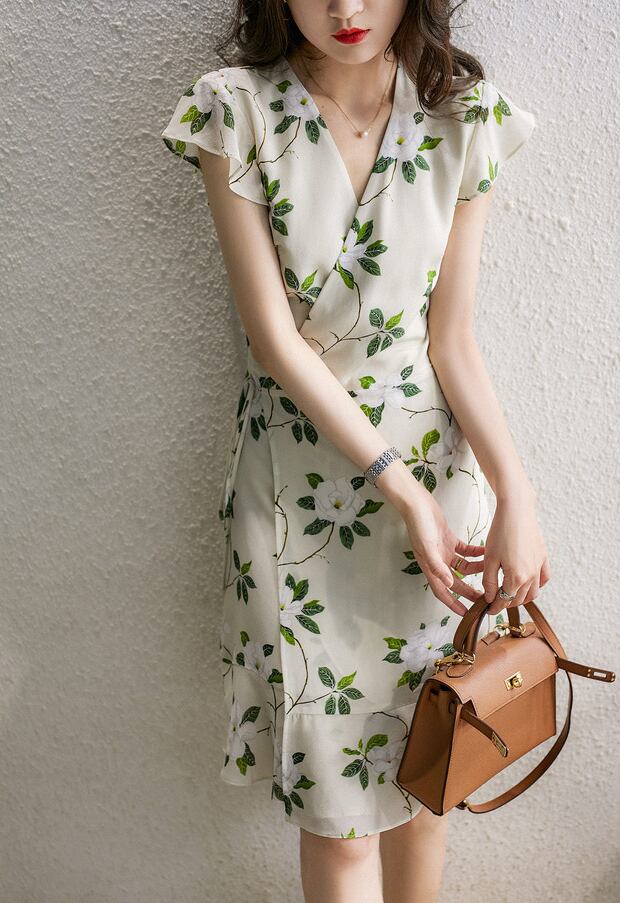 レディース ワンピース ドレス ワンピースドレス 膝丈 フレアスリーブ フリル袖 Vネック カシュクール ストレート ラップ フェミニン ウエストマーク 透け感 大人可愛い きれいめ シンプル カジュアル 上品 おしゃれ エレガント モダン 主役級 抜け感 ベーシック ナチュラル 花柄 フラワー 夏 デート お出かけ パーティー イベント リゾート 旅行 レストラン 女子会 休日 ホテル ショッピング カフェ 韓国 オルチャン コーデ 体型カバー 普段使い 着回し S M L XL 2XL ホワイト