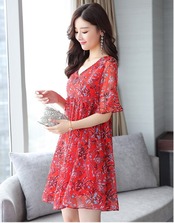 レディース ワンピース ドレス プルオーバー ミニ ミニワンピ 5分袖 フレアスリーブ フリル袖 Vネック セミフレア Aライン 切り替え フェミニン タック ハイウエスト 透け感 切り替えデザイン かわいい 大人可愛い きれいめ シンプル カジュアル おしゃれ こなれ感 ガーリー 主役級 存在感 抜け感 キュート ロマンティック ナチュラル 花柄 フラワー 総柄 夏 デート お出かけ イベント レストラン 女子会 休日 カフェ 脚長 普段使い モテ M L XL 2XL 3XL 4XL レッド ブルー