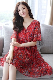 花柄が華やかな雰囲気の五分袖フレアスリーブミニワンピースドレス。