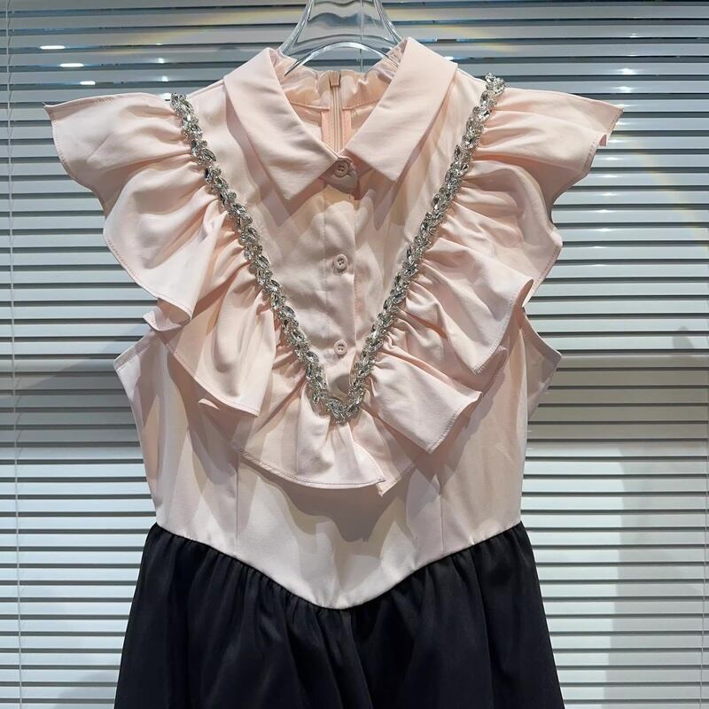 ワンピース シャツワンピ ショート 膝上 ノースリーブ フリル袖 Vネック 襟付き 角襟 細身 Aライン 背中開き シフォン フリル ウエストマーク ファスナー 薄手 大人可愛い きれいめ 上品 おしゃれ こなれ感 個性的 クール モード系 エレガント フォーマル 抜け感 ラグジュアリー 無地 夏 二次会 デート お出かけ パーティー イベント リゾート 旅行 レストラン 公園 女子会 休日 ホテル ガーデン ショッピング 発表会 コンサート カフェ 脚長 普段使い モテ ホワイト ピンク