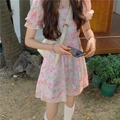 レディース ワンピース ドレス ワンピースドレス ワンピドレス プルオーバー ミニ 半袖 パフスリーブ キャンディスリーブ スクエアネック セミフレア Aライン タック ウエストマーク ハイウエスト 透け感 ギャザー ふんわり かわいい 大人可愛い カジュアル おしゃれ ガーリー 主役級 存在感 抜け感 ラブリー キュート ロマンティック ナチュラル 花柄 フラワー 夏 デート お出かけ イベント レストラン 女子会 休日 ショッピング カフェ 体型カバー 脚長 普段使い 着回し モテ S M L ピンク