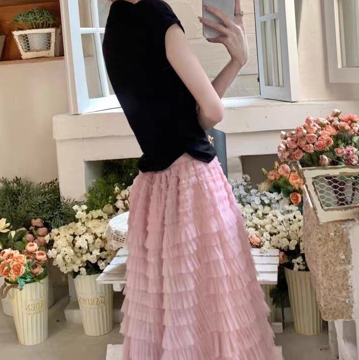 スカート ボトムス ティアード チュールスカート フレアスカート ロングスカート レーススカート ロング マキシ フレア Aライン フェミニン レース チュール フリル ハイウエスト ウエストゴム 伸縮性 かわいい 大人可愛い おしゃれ ガーリー ラブリー キュート ロリータ プリンセス ラグジュアリー ロマンティック 無地 春 夏 パーティー イベント 女子会 休日 コスプレ お揃い 双子 楽ちん 体型カバー 脚長 普段使い 着回し トレンド 流行 インスタ映え ゆったり ゆる フリーサイズ ピンク