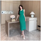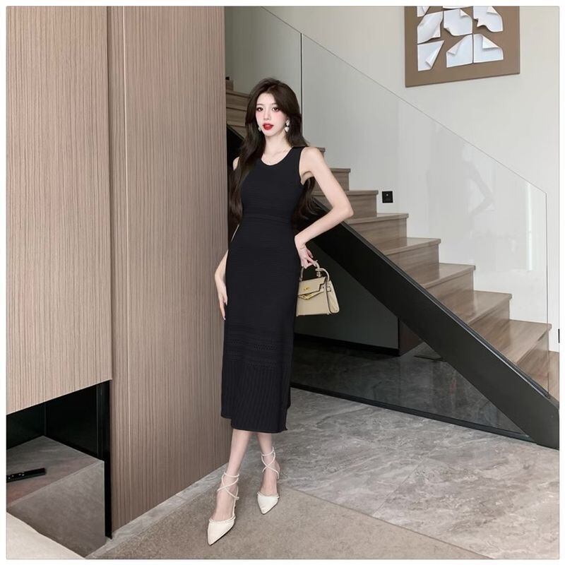 襟や袖がないシンプルなデザインながら、ハイウエストでスタイルアップ力もバッチリ。