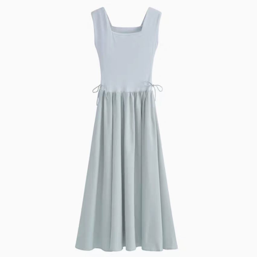 ワンピース レディース フレア マキシ 袖なし ノースリーブ スクエアネック タイト スリム 細身 Aライン リボン ウエストマーク ウエストリボン ハイウエスト かわいい 大人可愛い きれいめ シンプル カジュアル おしゃれ ラブリー キュート ベーシック アメリカン プレッピー カントリー アクティブ ナチュラル ヘルシー 無地 夏 デート お出かけ イベント リゾート ビーチ 休日 バカンス 楽ちん 体型カバー 脚長 普段使い 着回し 清楚 トレンド 流行 インスタ映え S M L 水色 ブルー