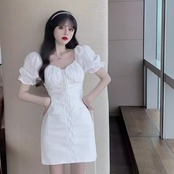 ワンピース レディース ミニ ショート 膝上 半袖 パフスリーブ スクエアネック 襟なし ワイド フレア Aライン フェミニン ハイウエスト 切り替えデザイン かわいい 大人可愛い シンプル カジュアル おしゃれ こなれ感 ラフ ガーリー 個性的 主役級 存在感 抜け感 ラブリー キュート 都会的 ベーシック ナチュラル 無地 春 夏 デート お出かけ 女子会 休日 ショッピング カフェ 美脚 脚長 モテ 清楚 トレンド 流行 インスタ映え 定番 S M L XL ホワイト ブラック ベーシックカラー
