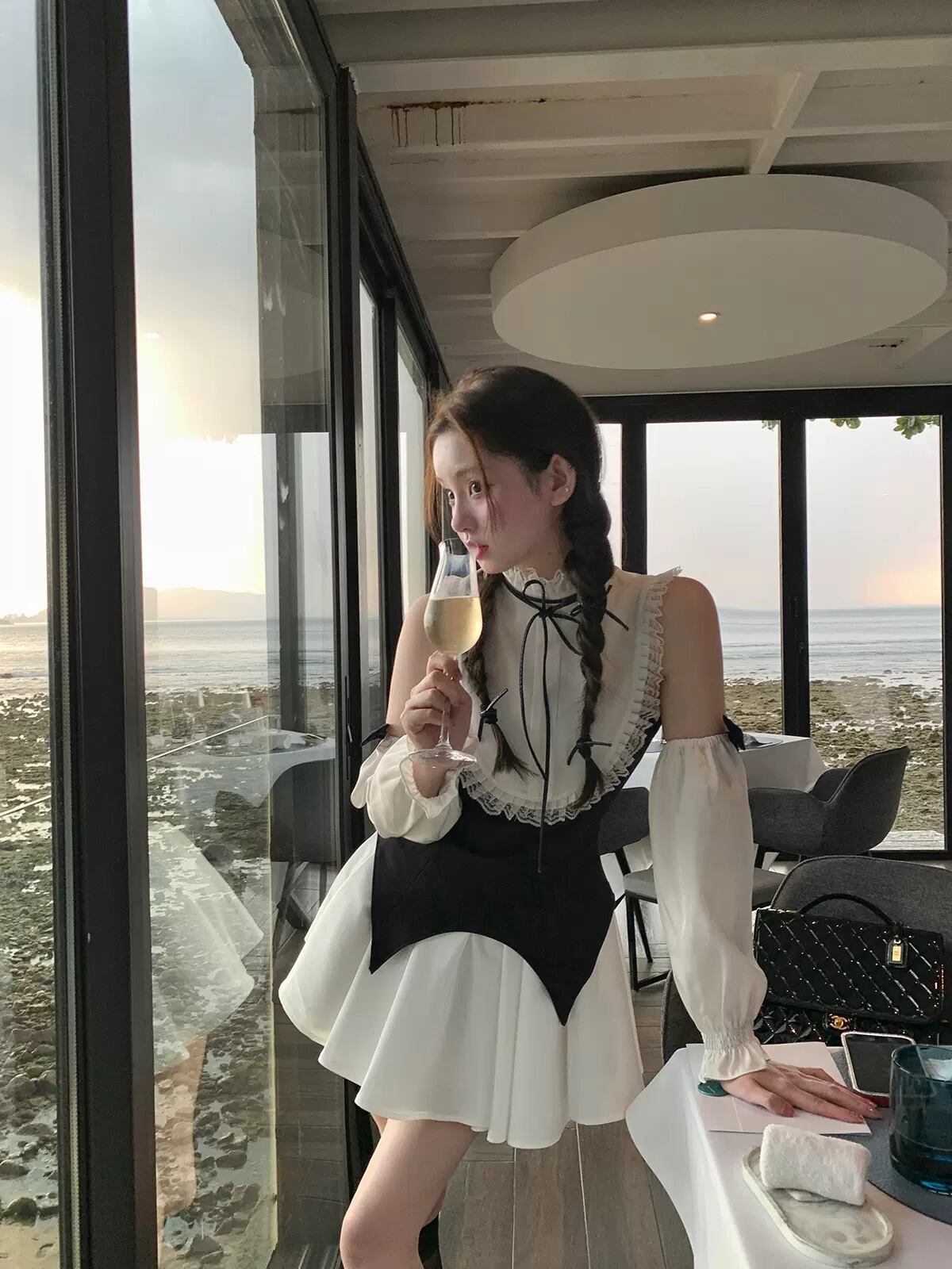 レディース ワンピース ドレス ワンピースドレス ワンピドレス メイド メイド風 ミニ バルーン袖 スタンドカラー ヨーク フレア Aライン 切り替え ドッキング レース フリル リボン 切り替えデザイン バイカラー 綿 コットン ポリエステル かわいい 大人可愛い おしゃれ ガーリー 主役級 存在感 抜け感 ラブリー キュート ロマンティック 無地 春 夏 デート お出かけ パーティー イベント レストラン 女子会 休日 ショッピング コスプレ カフェ モノトーン プレゼント XS S M L