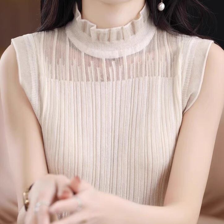 トップス カットソー タンクトップ 袖なし ノースリーブ スタンドカラー フリル 透け感 シースルー コンサバ ニット かわいい 大人可愛い 上品 おしゃれ エレガント モダン 抜け感 ラブリー キュート クラシカル ベーシック アクティブ ロマンティック ナチュラル ヘルシー 無地 夏 ママ デート お出かけ 女子会 休日 コンパ 婚活 普段使い 着回し レイヤード モテ 清楚 トレンド 流行 インスタ映え M L XL 2XL 大きいサイズ ビッグ ゆったり ゆる 白 ホワイト クリーム 黒 ブラック