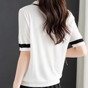トップス カットソー レディース 半袖 Vネック ポロカラー フェミニン コンサバ バイカラー 配色 かわいい 大人可愛い きれいめ シンプル 上品 おしゃれ こなれ感 ラフ メンズライク マニッシュ スポーティー ガーリー エレガント ベーシック アクティブ ナチュラル ヘルシー オフィス ビジネス 通勤 学生 学校 通学 お出かけ 休日 ショッピング カフェ 普段使い 着回し レイヤード トレンド 流行 インスタ映え 定番 M L XL 2XL 白 ホワイト 黒 ブラック ベーシックカラー 大人カラー