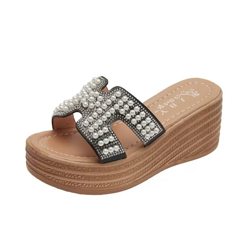 レディース サンダル ミュール ハイヒール 7cm ウッドソール 厚底 パール ビジュー 美脚 脚長 かわいい 大人可愛い きれいめ シンプル カジュアル 上品 おしゃれ エレガント ラブリー キュート 主役級 存在感 抜け感 華やか 夏 結婚式 二次会 披露宴 デート お出かけ パーティー イベント リゾート ホテル レストラン デイリー 普段使い 韓国 コーデ スタイル 高見え 格上げ モテ 21.5cm 22.5cm 23.0cm 23.5cm 24.0cm 24.5cm 25.0cm 25.5cm
