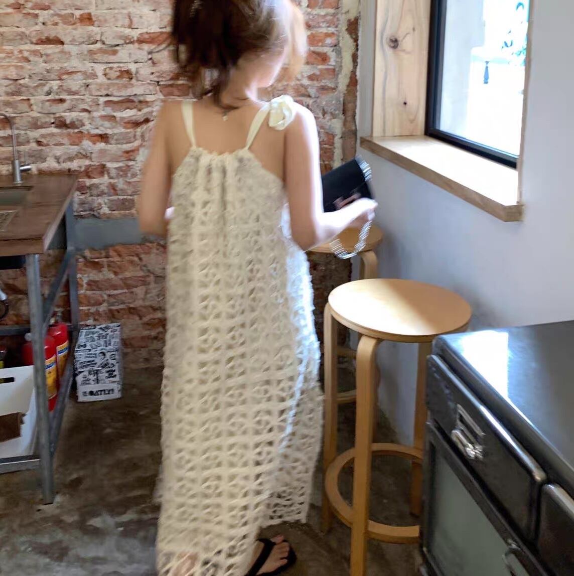 夏のビーチやリゾートにぴったりな透け感のあるエレガントなキャミワンピ。