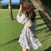 ワンピース レディース シャツワンピ フレア ティアード ショート 長袖 ボリューム袖 背中開き フェミニン フリル ウエストマーク ハイウエスト 薄手 かわいい 大人可愛い きれいめ 上品 おしゃれ ガーリー クール エレガント モダン 抜け感 ラブリー キュート ラグジュアリー ロマンティック ナチュラル セクシー ヘルシー 花柄 フラワー 春 夏 秋 お出かけ パーティー イベント リゾート 旅行 休日 バカンス 美脚 脚長 普段使い 着回し トレンド 流行 インスタ映え S M L XL ブルー