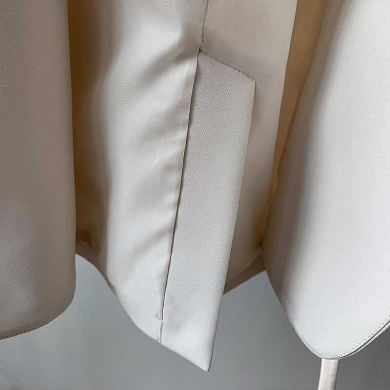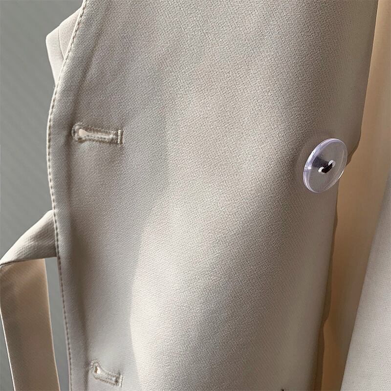 シンプルなデザインで着回しの効くノーカラーダブルジレベスト。