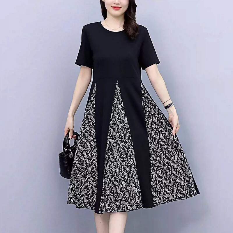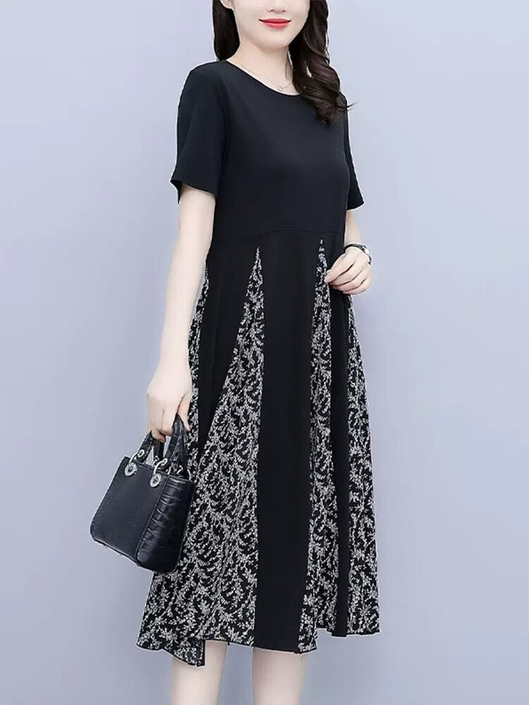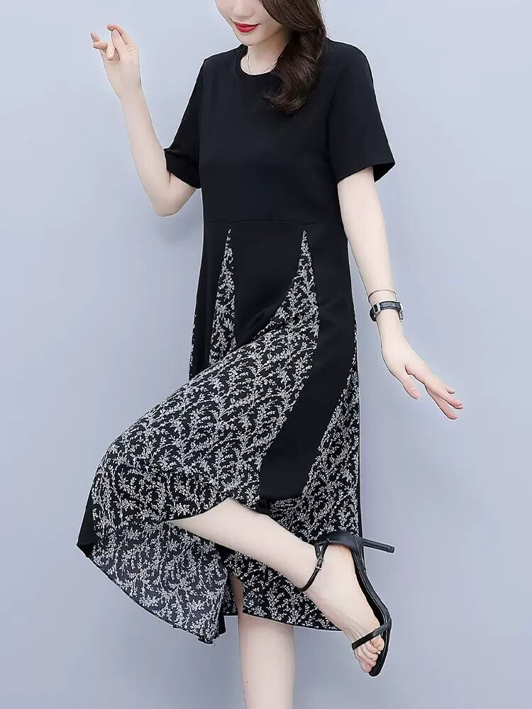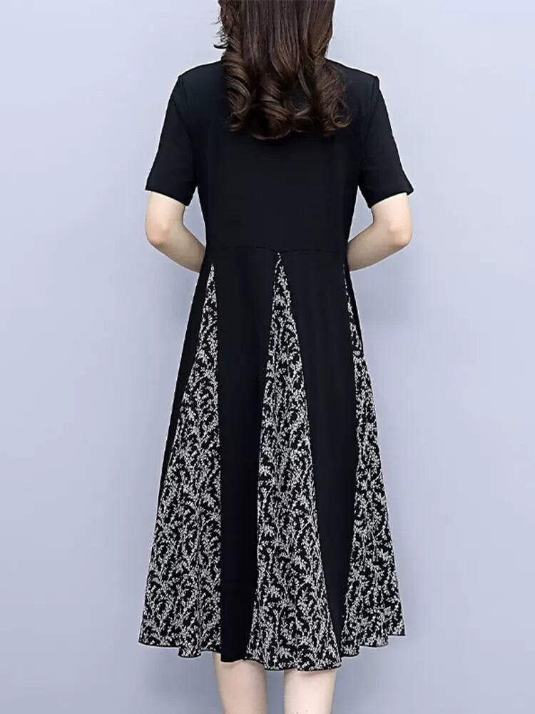 レディース ワンピース 膝下 ロング 半袖 ラウンドネック フレア Aライン 切り替え ドッキング フェミニン ハイウエスト 切り替えデザイン ポリエステル 大人可愛い きれいめ シンプル 上品 おしゃれ エレガント 主役級 存在感 ロマンティック ナチュラル 花柄 フラワー 夏 デート お出かけ イベント リゾート 旅行 レストラン 女子会 休日 バカンス ホテル ショッピング カフェ 婚活 体型カバー 脚長 普段使い 着回し L XL 2XL 3XL 4XL 5XL 黒 ブラック