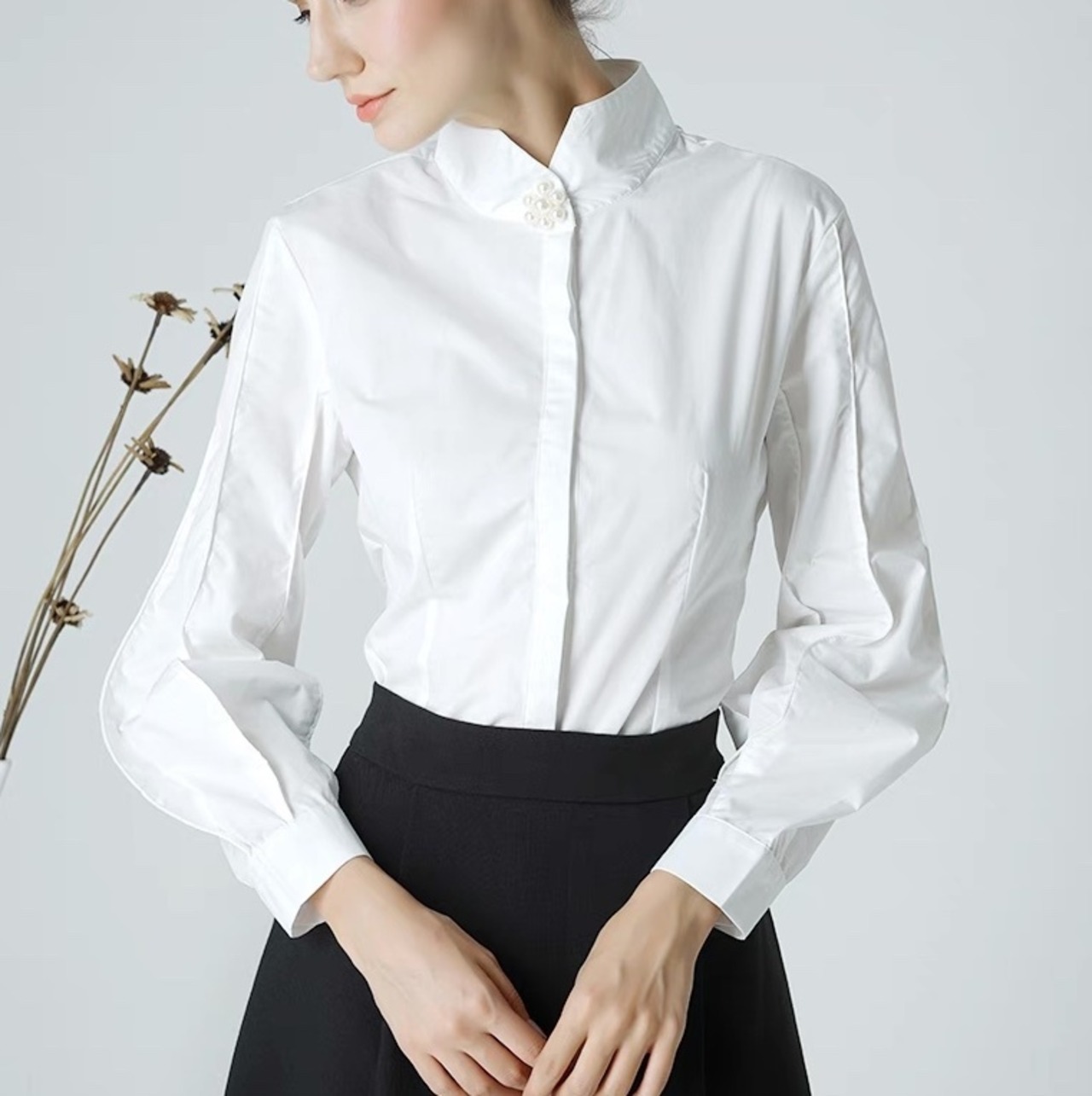 トップス シャツ ブラウス レディース 長袖 ボリューム袖 スタンドカラー オーバーサイズ ボタン かわいい 大人可愛い きれいめ シンプル 上品 おしゃれ レトロ クール エレガント モダン フォーマル ヴィンテージ ラブリー キュート ベーシック 無地 春 秋 MTG 通勤 重ね着 普段使い 着回し レイヤード 清楚 トレンド 流行 インスタ映え S M L XL 2XL 3XL 4XL 小さいサイズ 大きいサイズ ビッグ ゆったり ゆる 白 ホワイト 黒 ブラック ピンク レッド ベーシックカラー