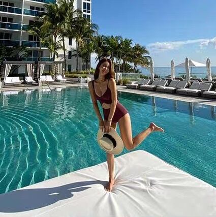谷間と脚長効果で夏のリゾートに主役級の存在感。