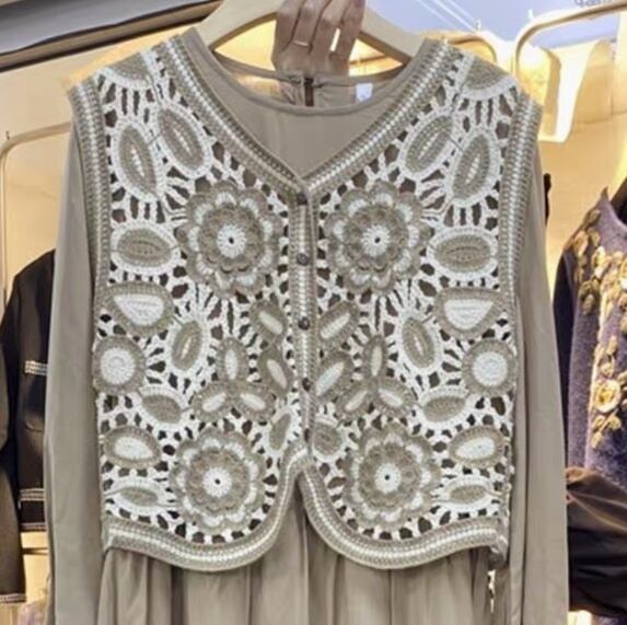 大人可愛いクロシェベストで叶える、抜け感のあるフェミニンスタイル。