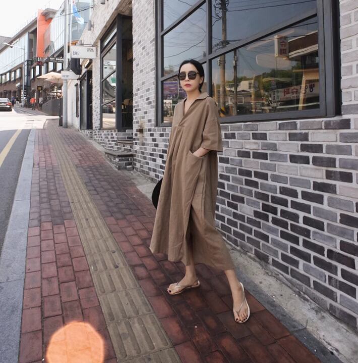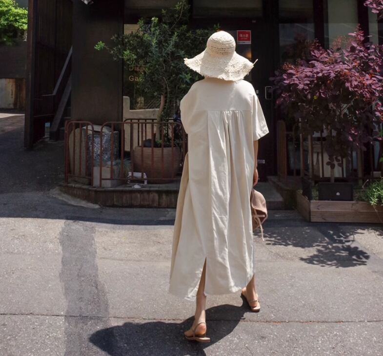 レディース シャツワンピース ロング 半袖 5分袖 Vネック 襟付き ワイド フレア スリット 薄手 リネン 麻 シンプル カジュアル 上品 おしゃれ レトロ アジアン こなれ感 ラフ ルーズ 個性的 クール モダン 主役級 存在感 とろみ感 抜け感 ベーシック ナチュラル 無地 春 夏 デート お出かけ 休日 ショッピング カフェ コーデ 楽ちん 体型カバー モテ 清楚 トレンド 流行 インスタ映え 定番 S M L XL ゆったり ブラウン グレー ベージュ ブルー ベーシックカラー 大人カラー