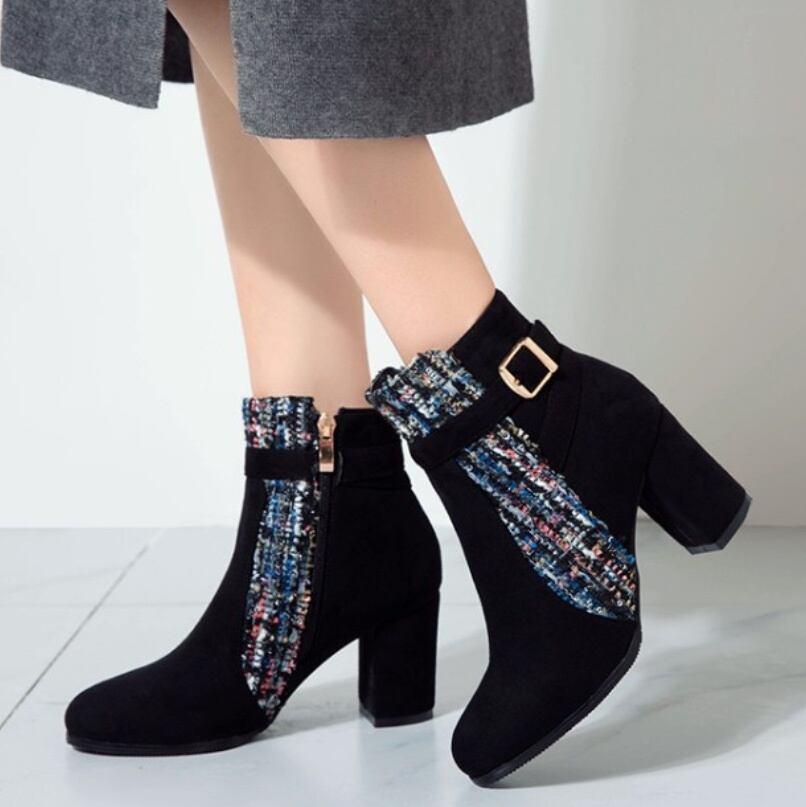 レディース ブーツ ハイヒール 7.5cm 太ヒール 切り替えデザイン ラウンドトゥ ベルト 美脚 脚長 ツイード かわいい 大人可愛い きれいめ 上品 おしゃれ かっこいい レトロ エレガント ラブリー キュート ガーリー モダン こなれ感 抜け感 華やか クラシック フェミニン スタイリッシュ 秋 冬 デート お出かけ イベント レストラン 休日 デイリー 普段使い 高見え 格上げ 22.5cm 23.0cm 23.5cm 24.0cm 24.5cm 25.0cm 22.0cm ベージュ 黒 ブラック